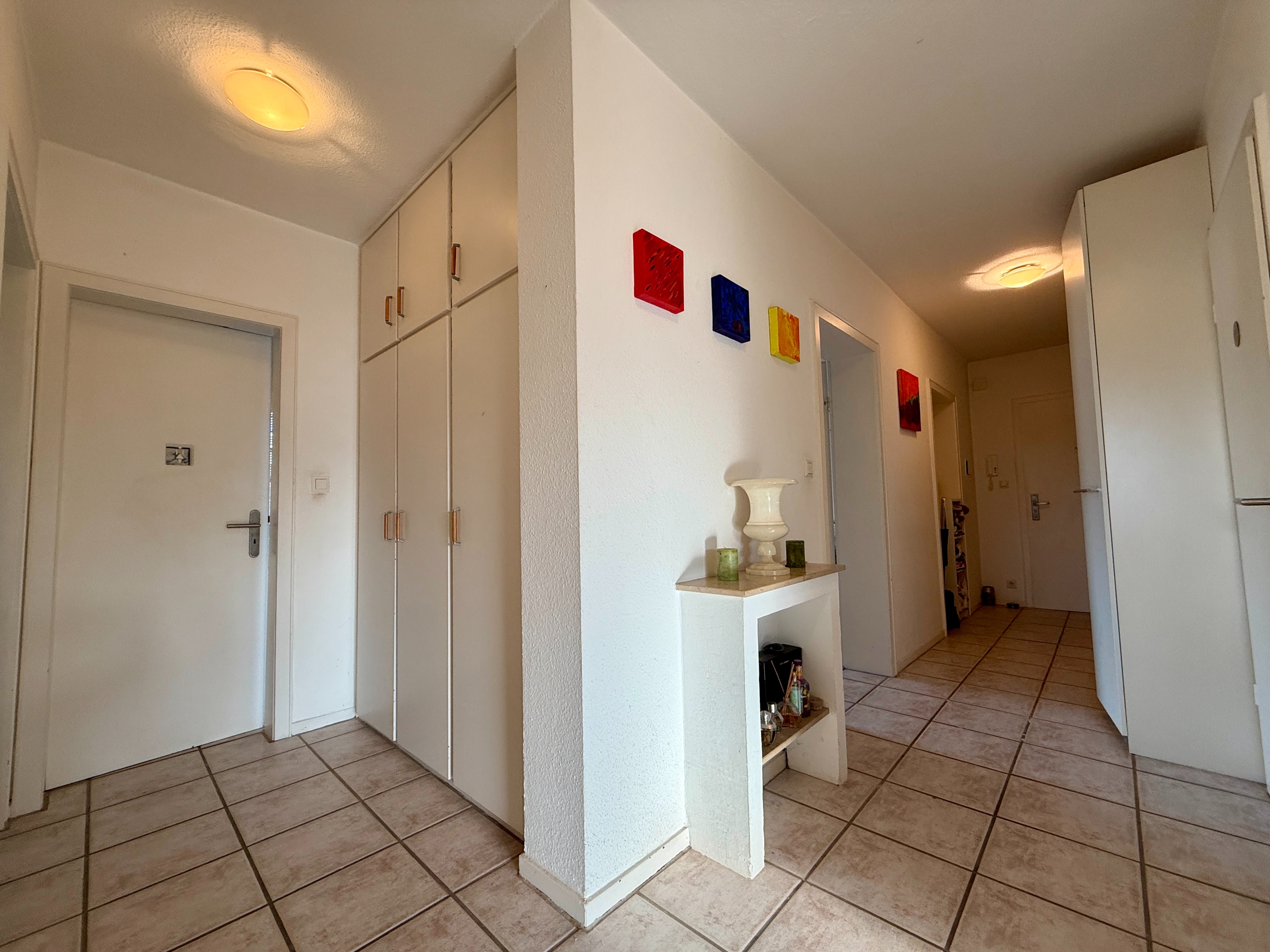Die Wohnung verfügt über drei Zimmer, eine separate Küche, ein Badezimmer sowie ein Gäste-WC. Herzstück der Wohnung ist das helle und geräumige Wohnzimmer mit breiter Fensterfront und direktem Zugang zum sonnigen Südbalkon mit Markise. Hier lassen sich ungestörte, ruhige und sonnige Stunden bis in die Abendstunden genießen.