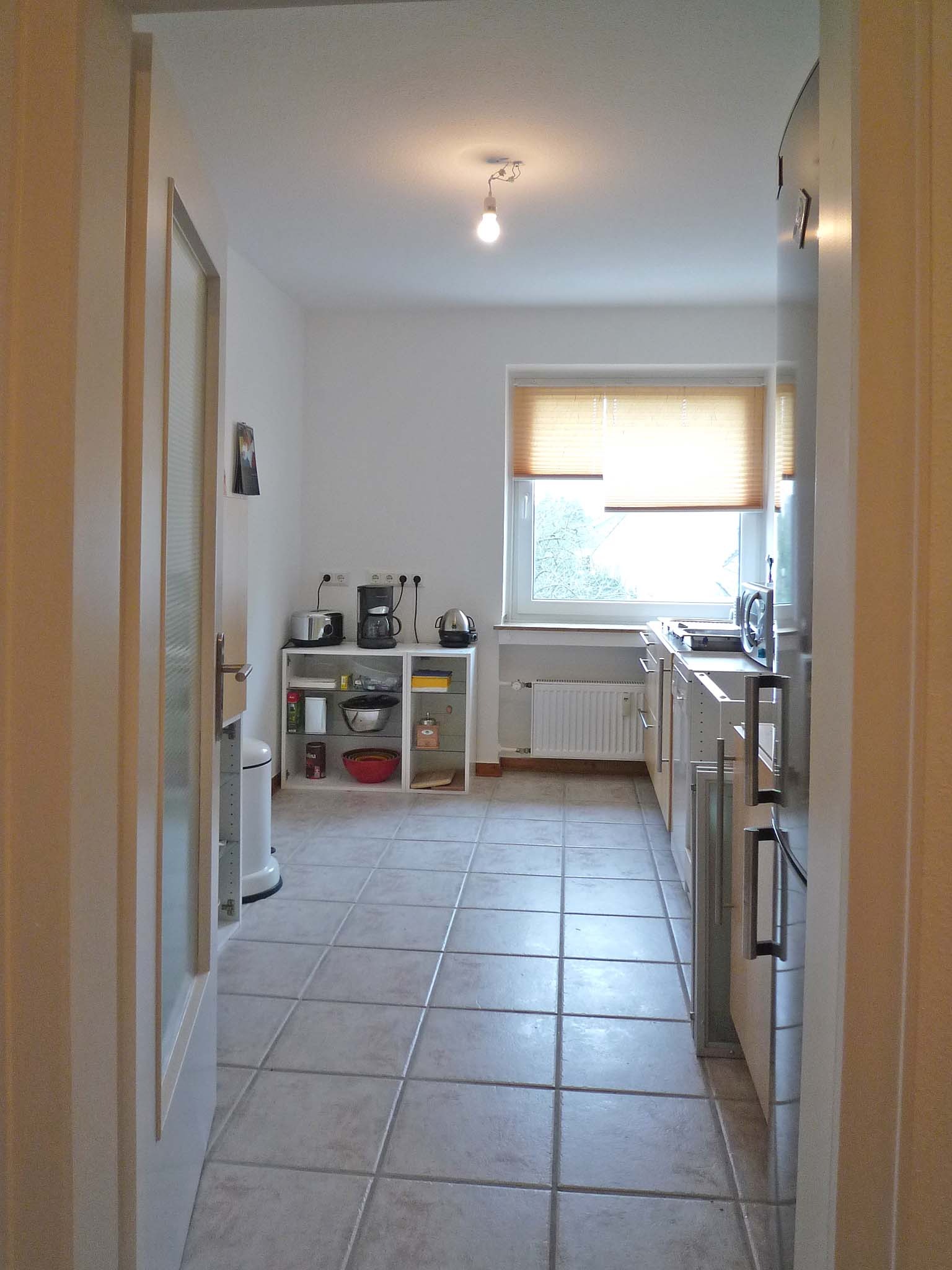 Die Küche grenzt unmittelbar an das Wohnzimmer an. Liebhaber offener Wohnkonzepte haben die Möglichkeit, die Wand zum Wohnzimmer zu öffnen und so einen großzügigen Wohn- und Kochbereich zu schaffen.