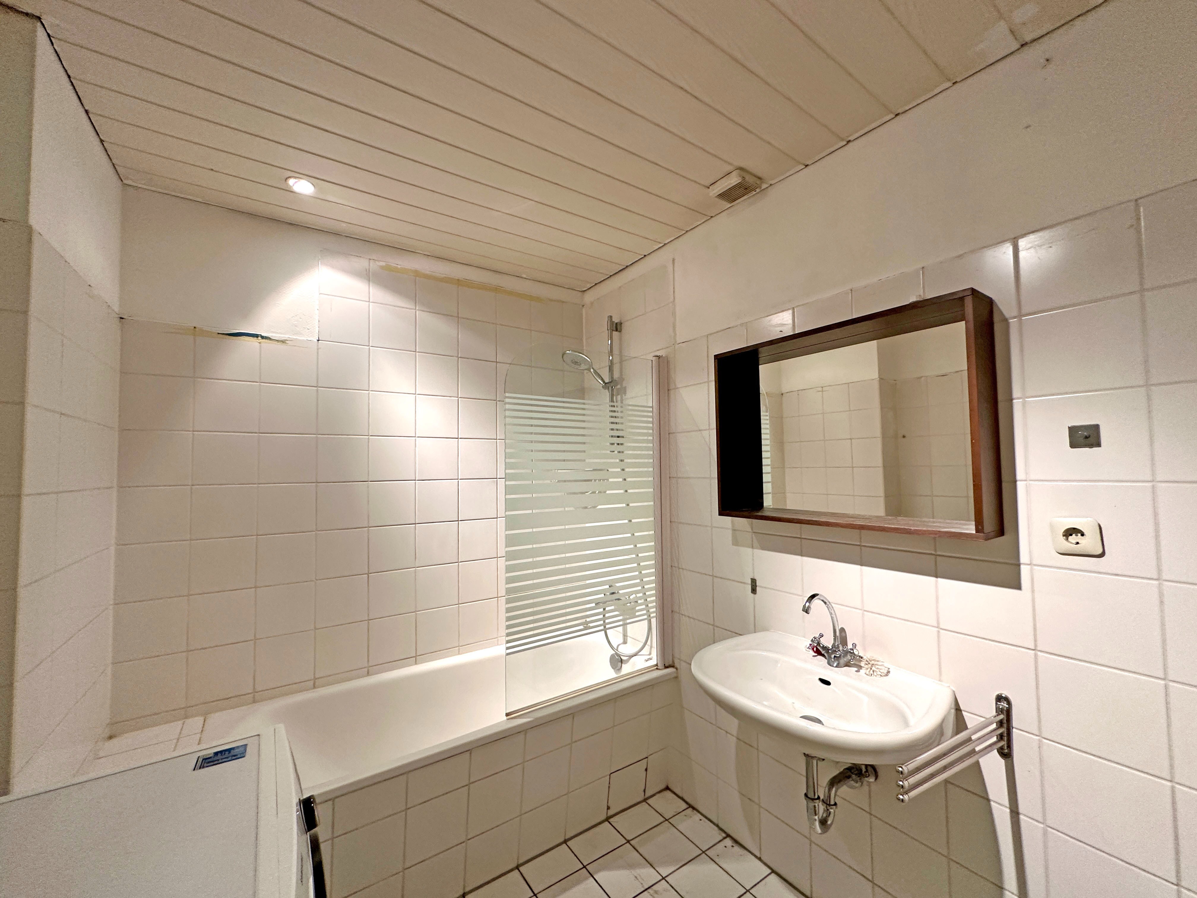 – weiß gefliestes Bad én Suite, mit Badewanne und Waschmaschinenanschluss