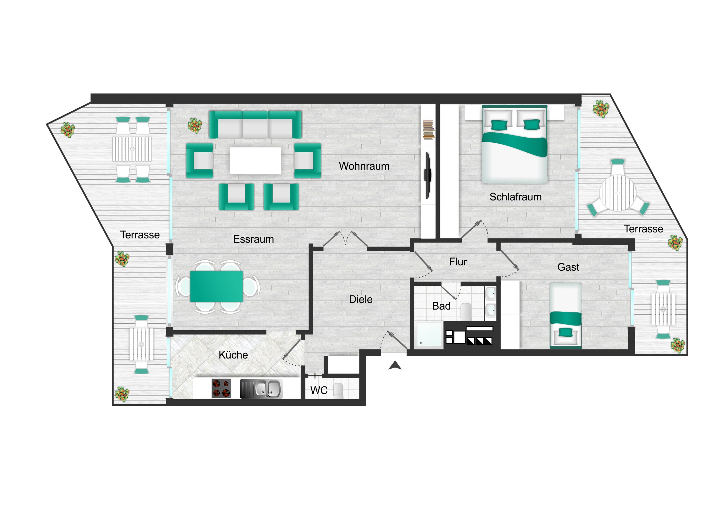 – zwei große, überdachte Balkone