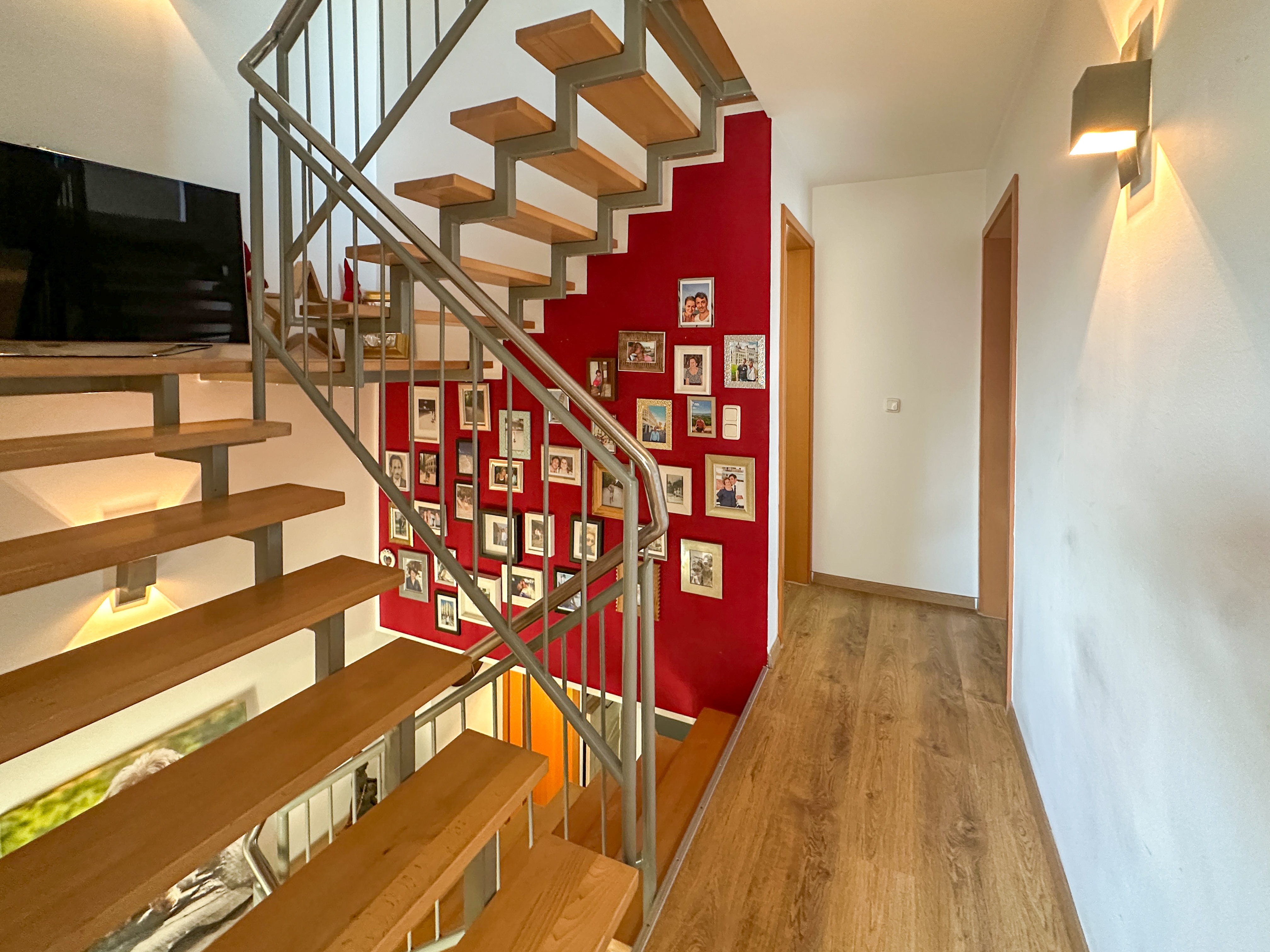 Schon der Weg durch den liebevoll angelegten Vorgarten lässt erahnen, was Sie im Inneren erwartet: ein stilvolles, harmonisches Ambiente mit modernem Wohnkomfort. Hier heißt es ankommen, eintreten und sich sofort wohlfühlen.
