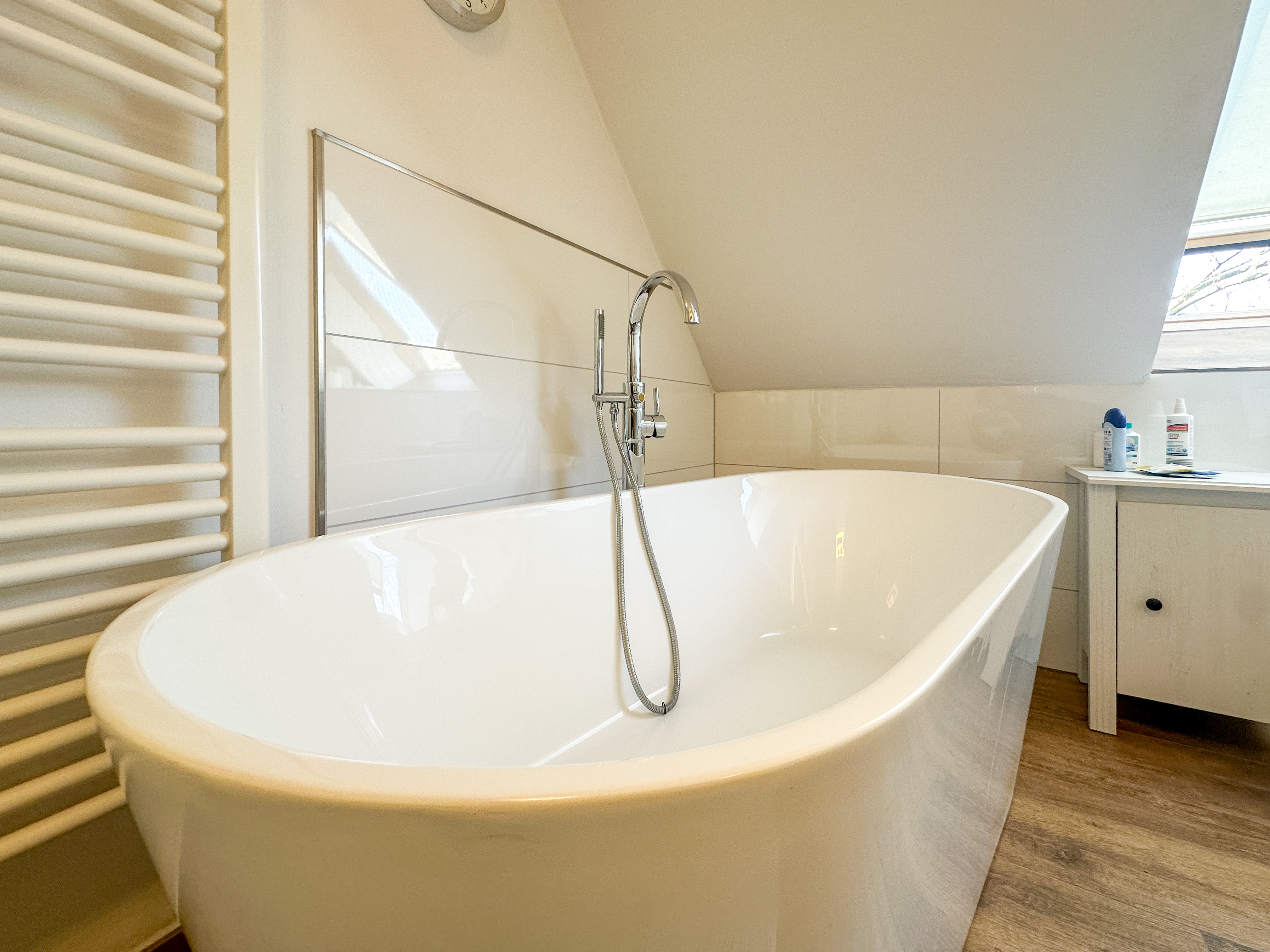 - Ausstattung des Bades Badewanne, Dusche, Fenster