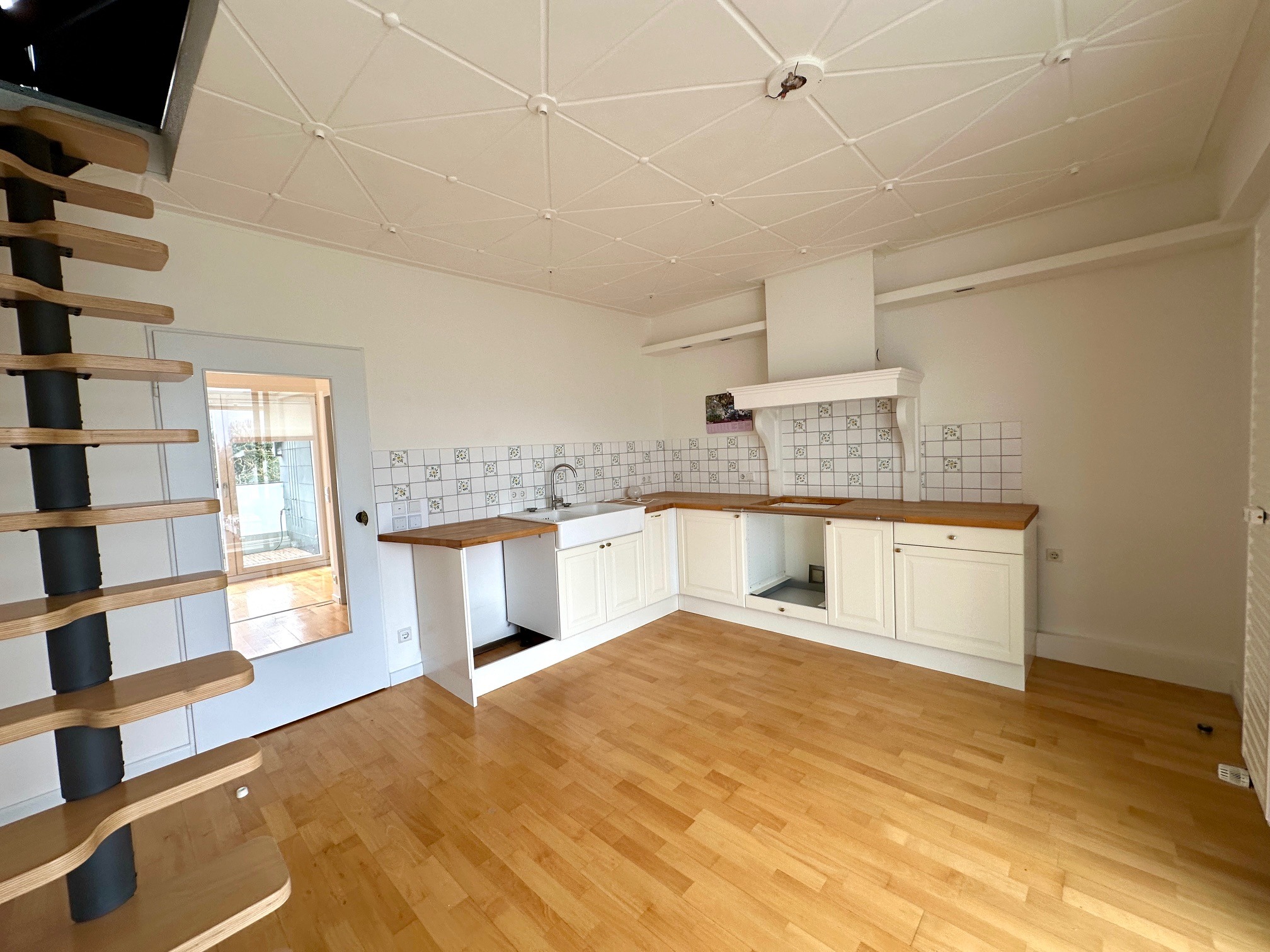 Die separate, geräumige Küche ist bereits mit einer hellen Einbauküche im charmanten Landhausstil ausgestattet. Viel Arbeitsfläche und eine gemütliche Atmosphäre machen sie zu einem Ort, an dem Kochen wieder Freude macht – ob schnelles Frühstück oder ausgiebiges Dinner mit Freunden.