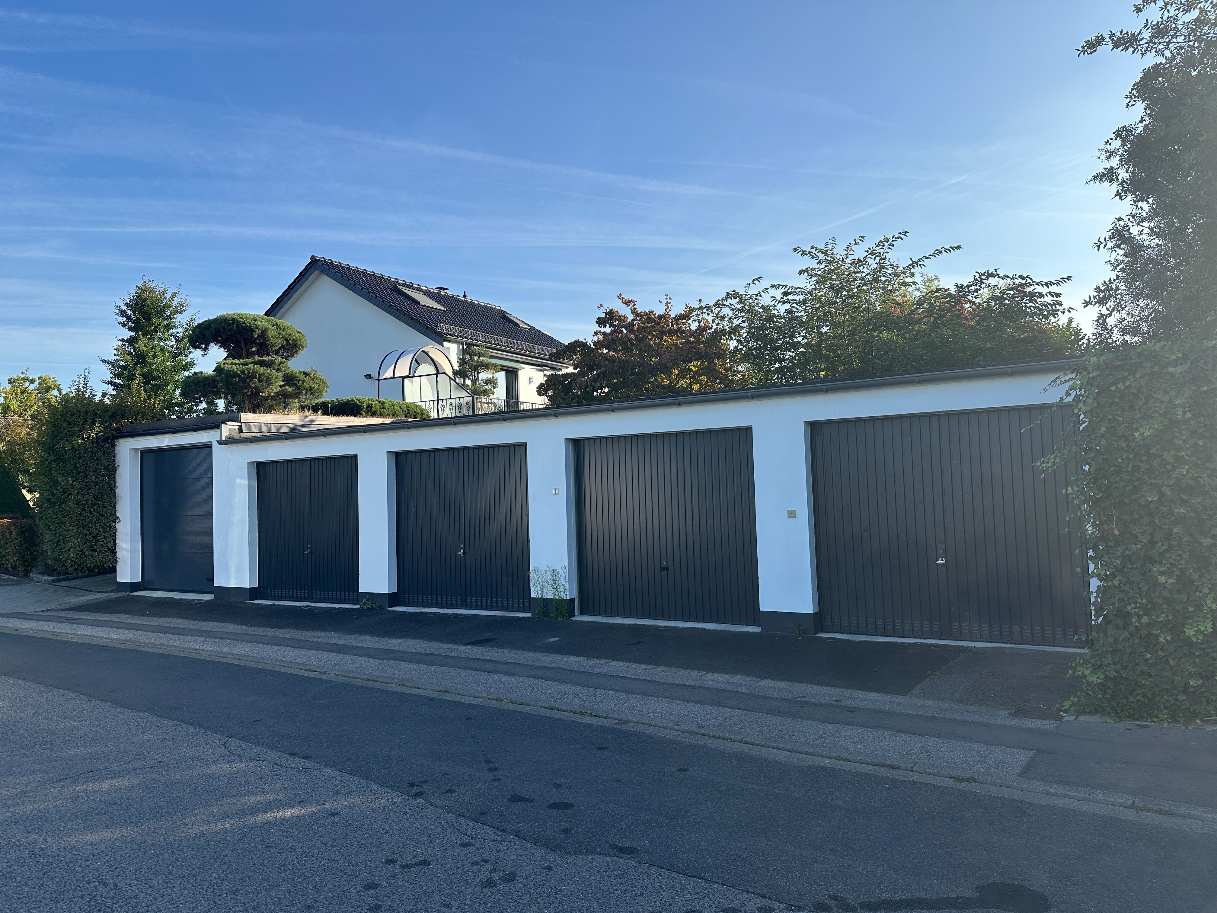 Zum Haus gehört eine Garage am Ende der Straße.