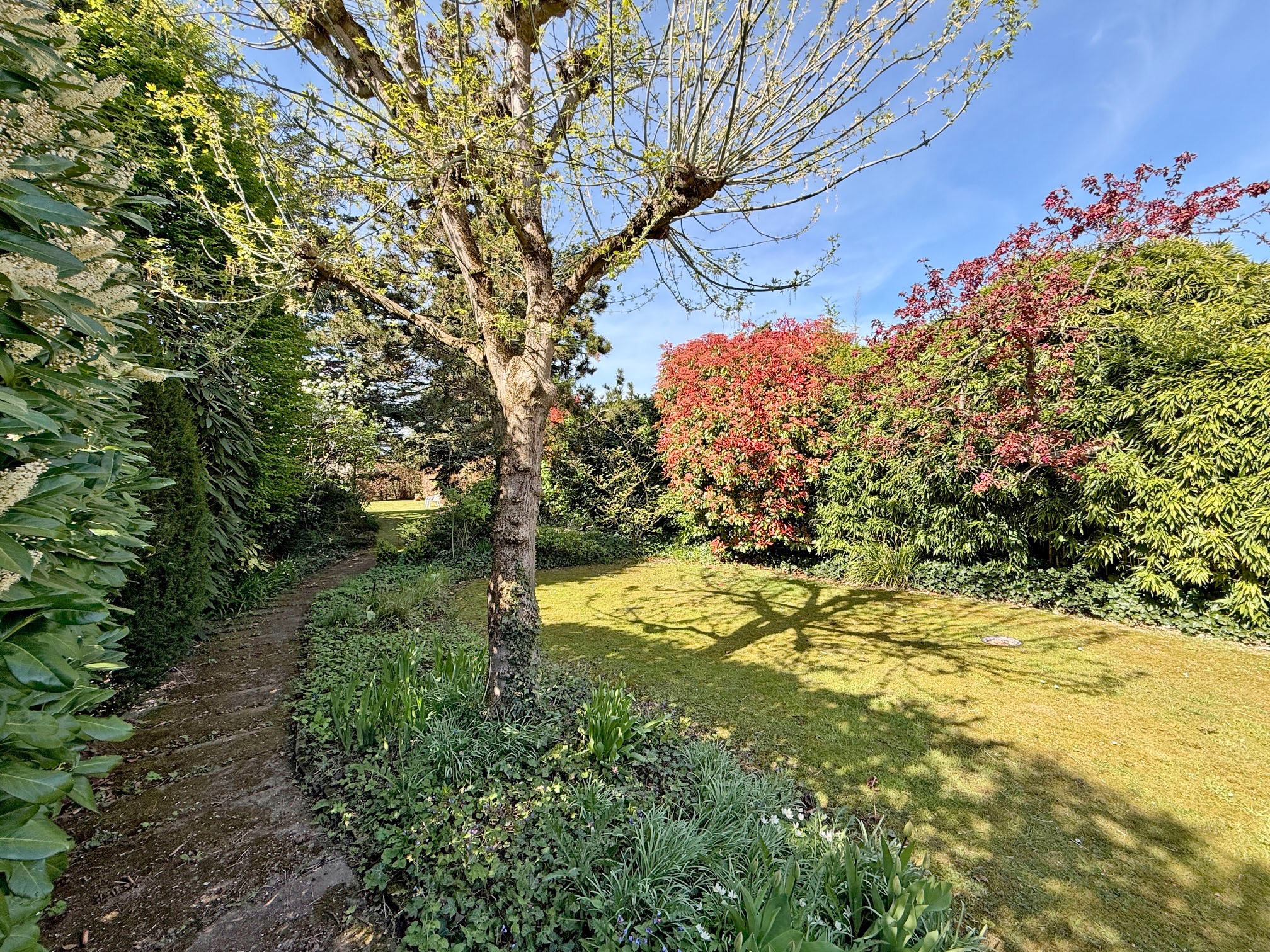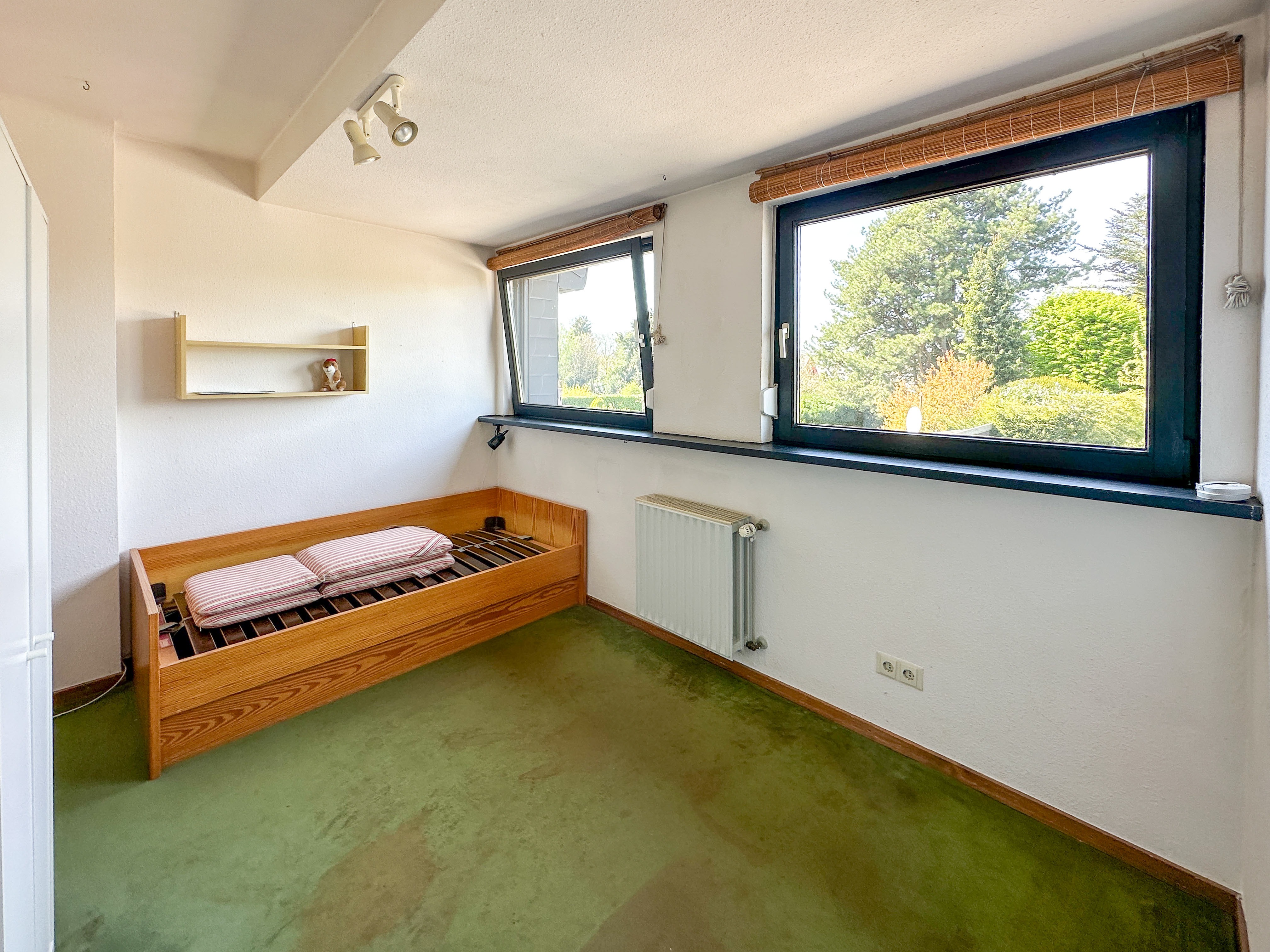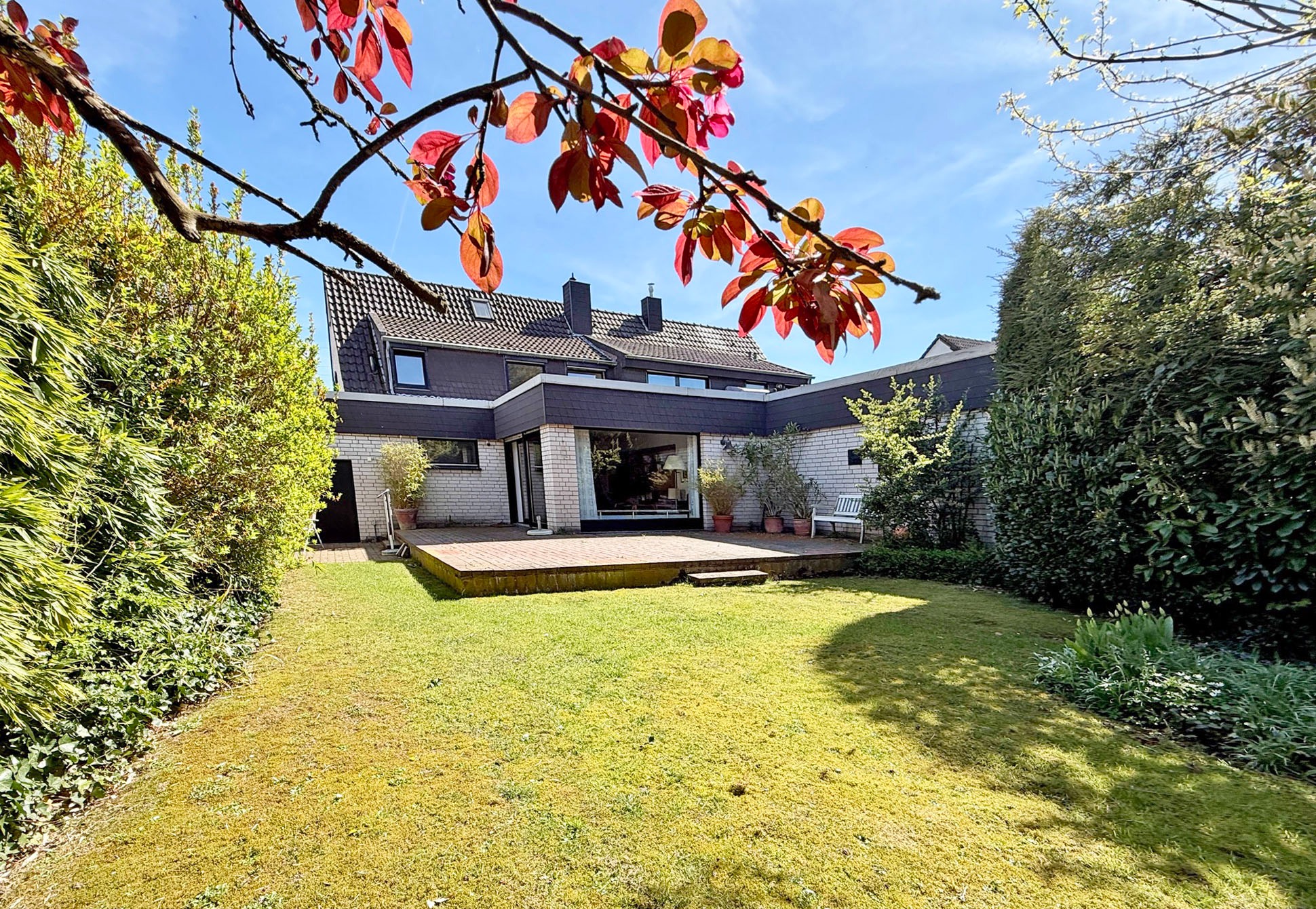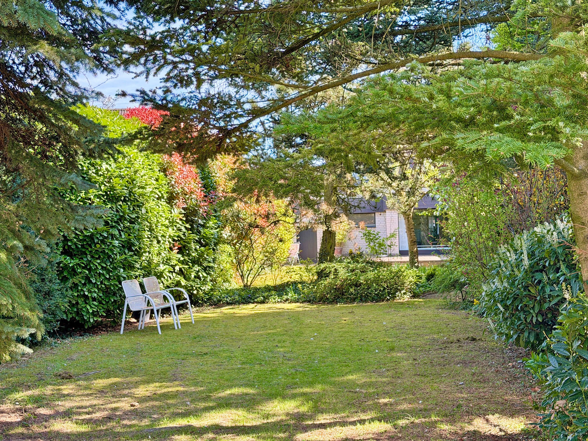 Der Garten ist ein echtes Highlight dieser Immobilie: Eingebettet in gewachsenen, alten Baumbestand präsentiert sich das Grundstück als grüne Oase der Ruhe. Hier genießen Sie zu jeder Jahreszeit ein besonderes Ambiente – sei es beim Frühstück auf der Terrasse, beim Spielen mit den Kindern oder beim entspannten Ausklang eines Sommertages. Die natürliche Bepflanzung verleiht dem Garten eine besondere Tiefe und Privatsphäre, während die pflegeleichte Gestaltung genügend Freiraum für individuelle Ideen lässt.