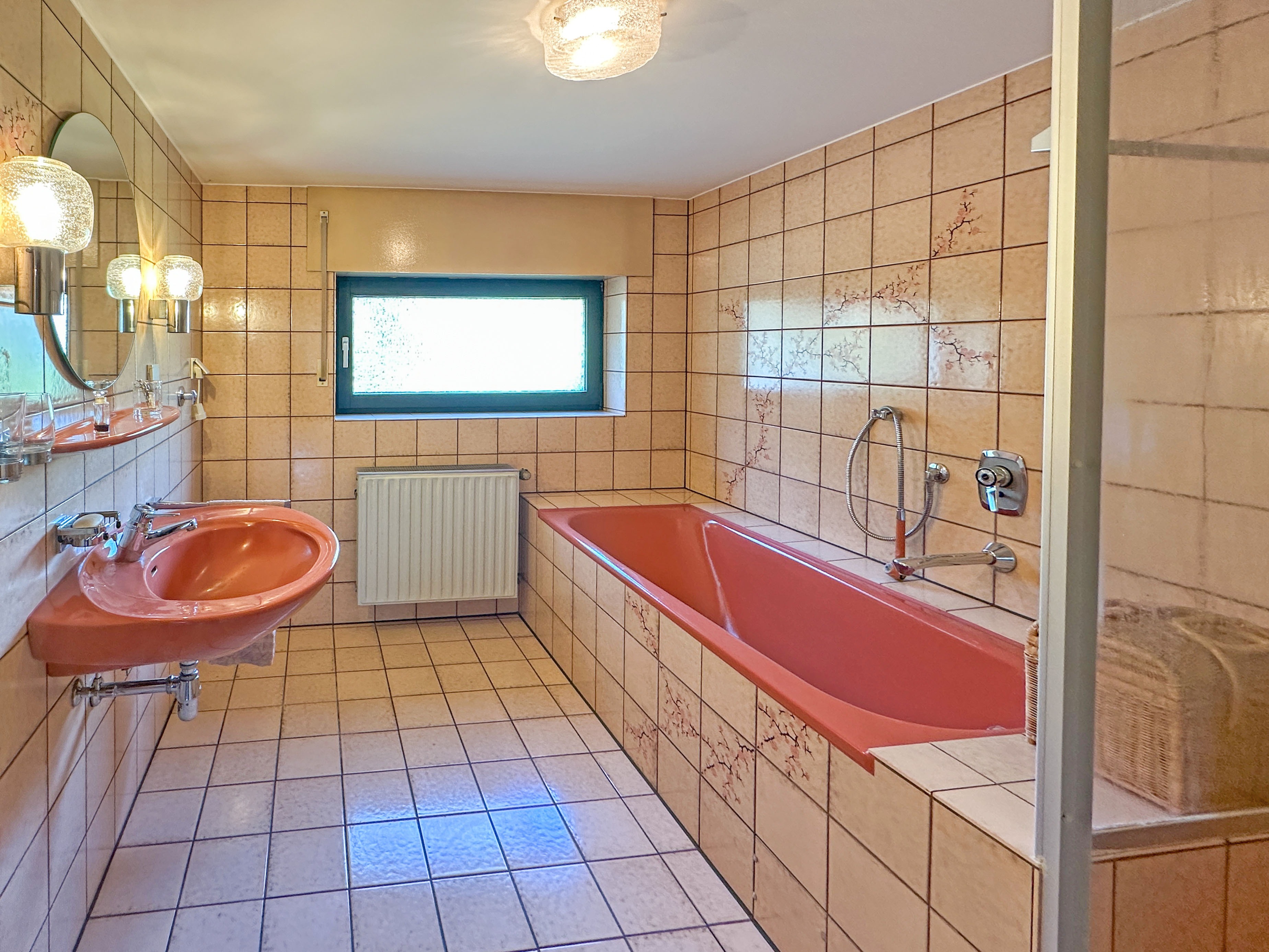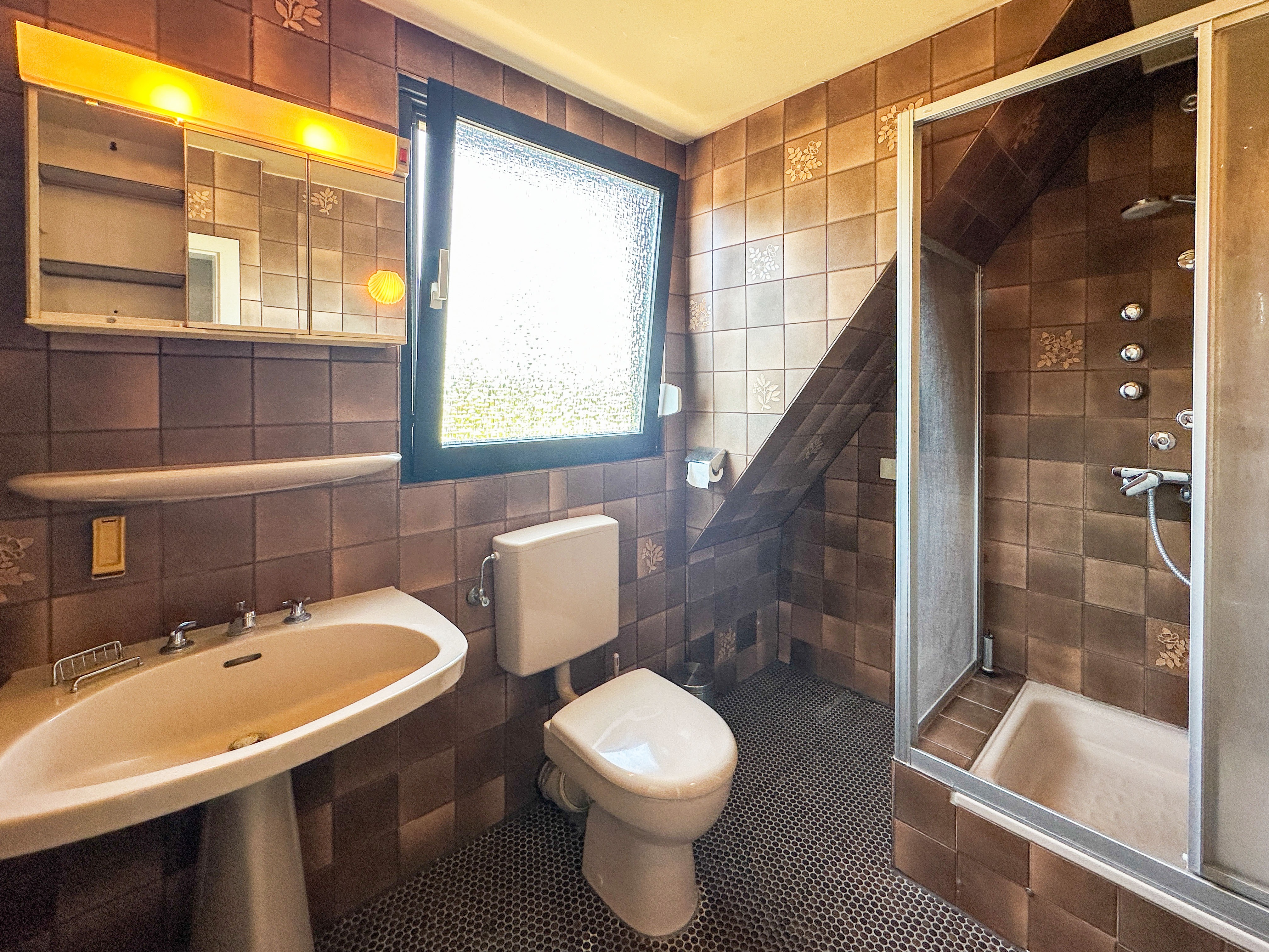 - Ausstattung des Bades Badewanne, Dusche, Fenster
