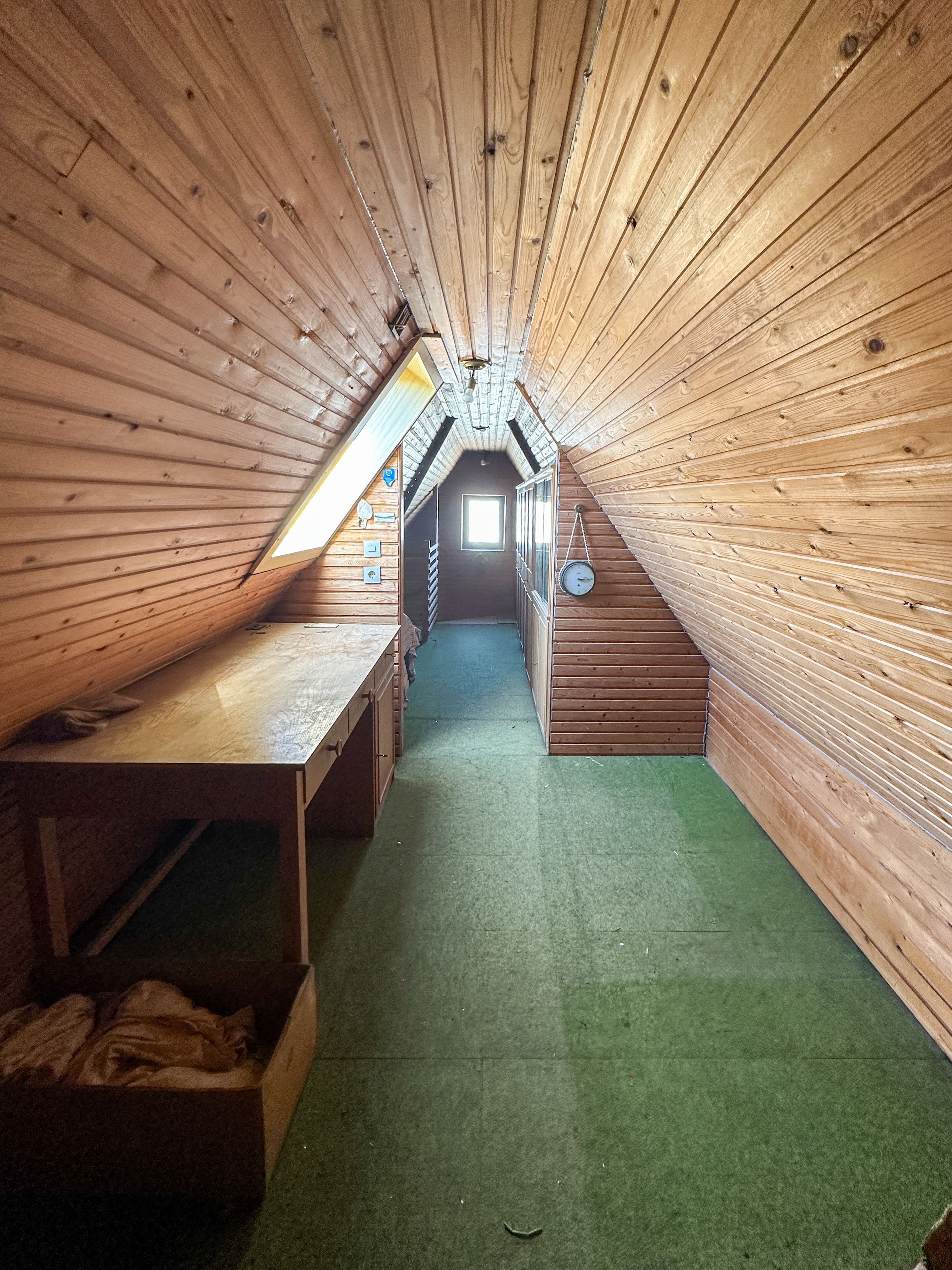 Über ein paar Stufen gelangen Sie zum Badezimmer sowie zu einem separaten Gäste-WC. Das Obergeschoss erreichen Sie über eine charmante Holztreppe. Hier stehen Ihnen drei Räume zur Verfügung, von denen derzeit zwei zusammengelegt sind, sowie ein weiteres Badezimmer. Der Speicher unterm Dach bietet zusätzliche Fläche.